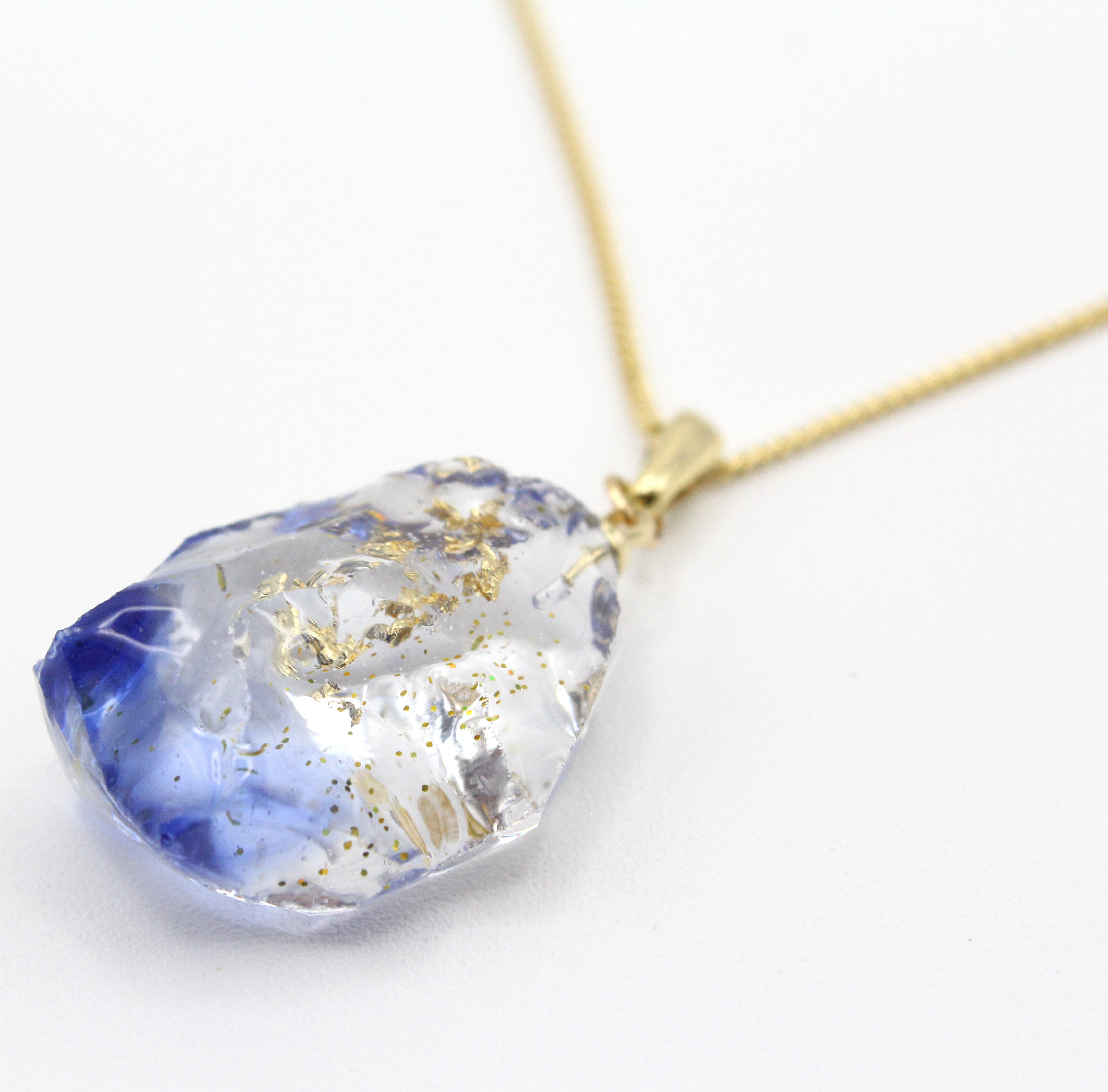 透明感あふれるレジンが光を反射し、まるで天然石のように美しいアクセサリーです。